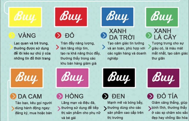 Vì mỗi màu sắc kích thích một phản ứng tương ứng, chúng ta có thể tận dụng màu sắc để thu hút người dùng click vào nút mua hàng.